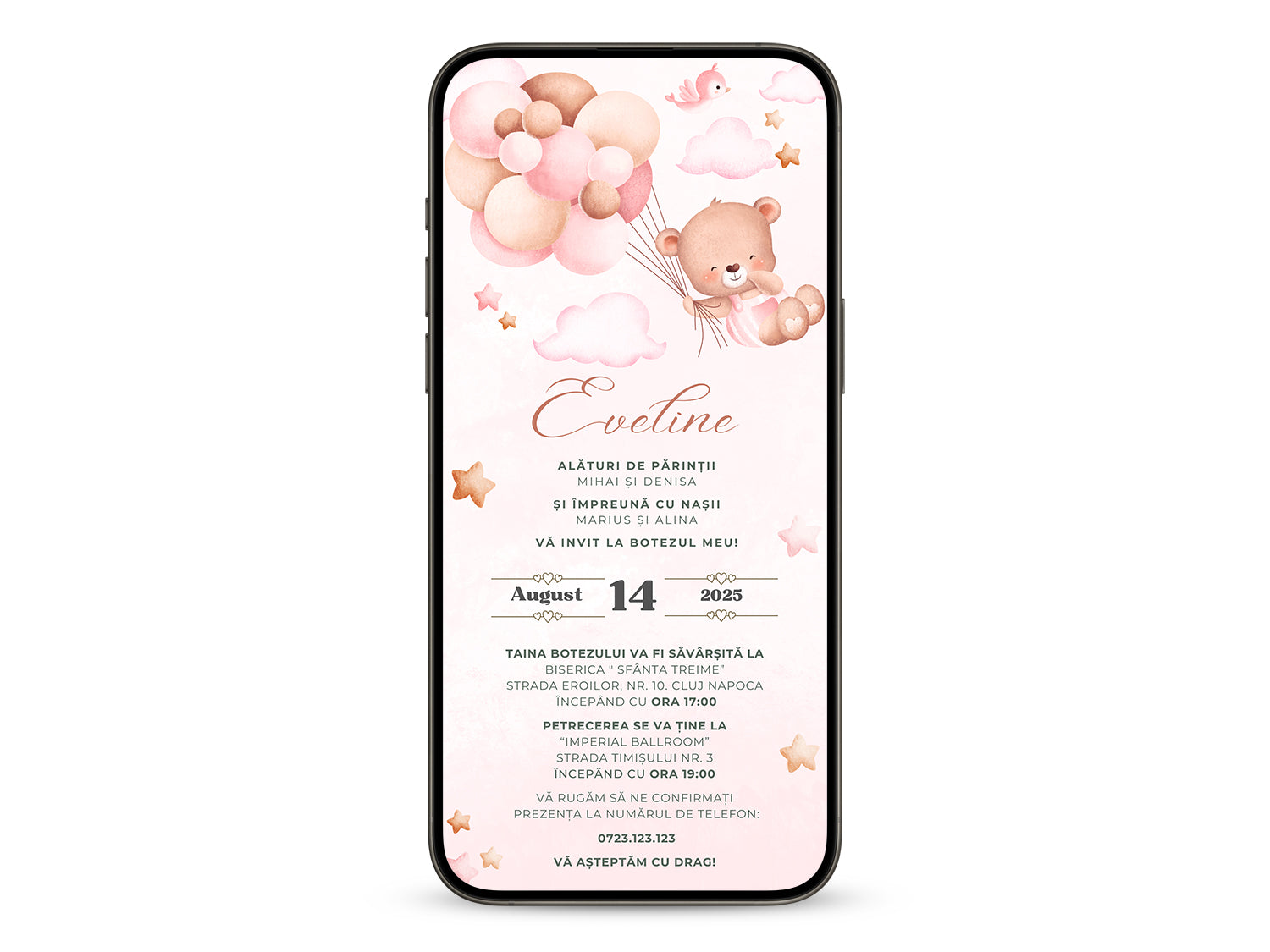 Invitatie Botez Ursuletul Cu Baloane, Format Digital