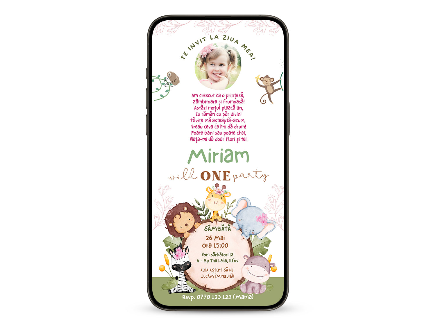 Invitatie Zi de Nastere Jungle, Format Digital
