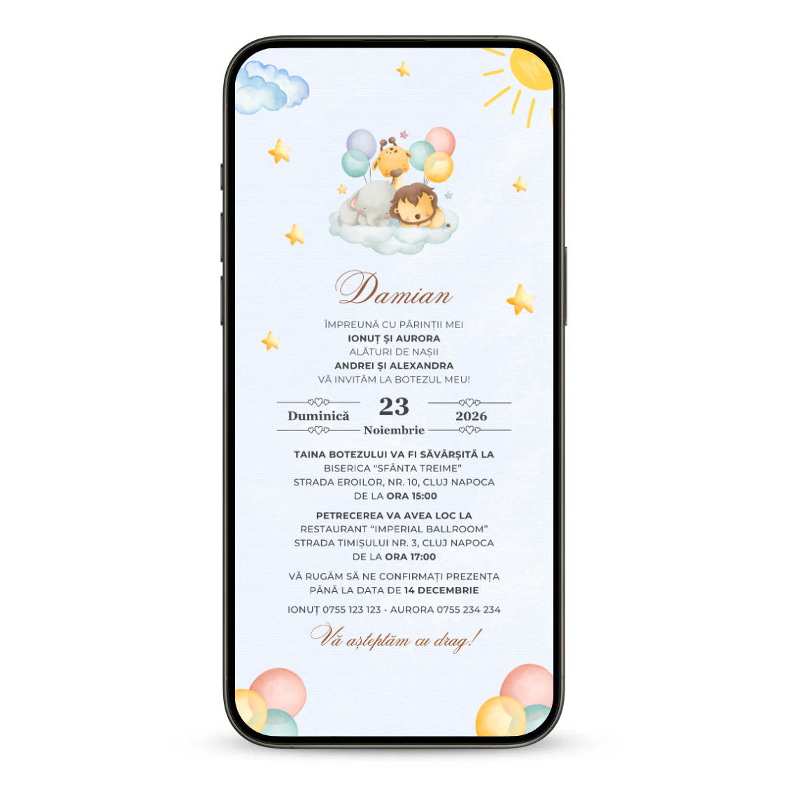 Alege o invitație de botez și primești GRATUIT fișierele digitale pe tematica invitației.