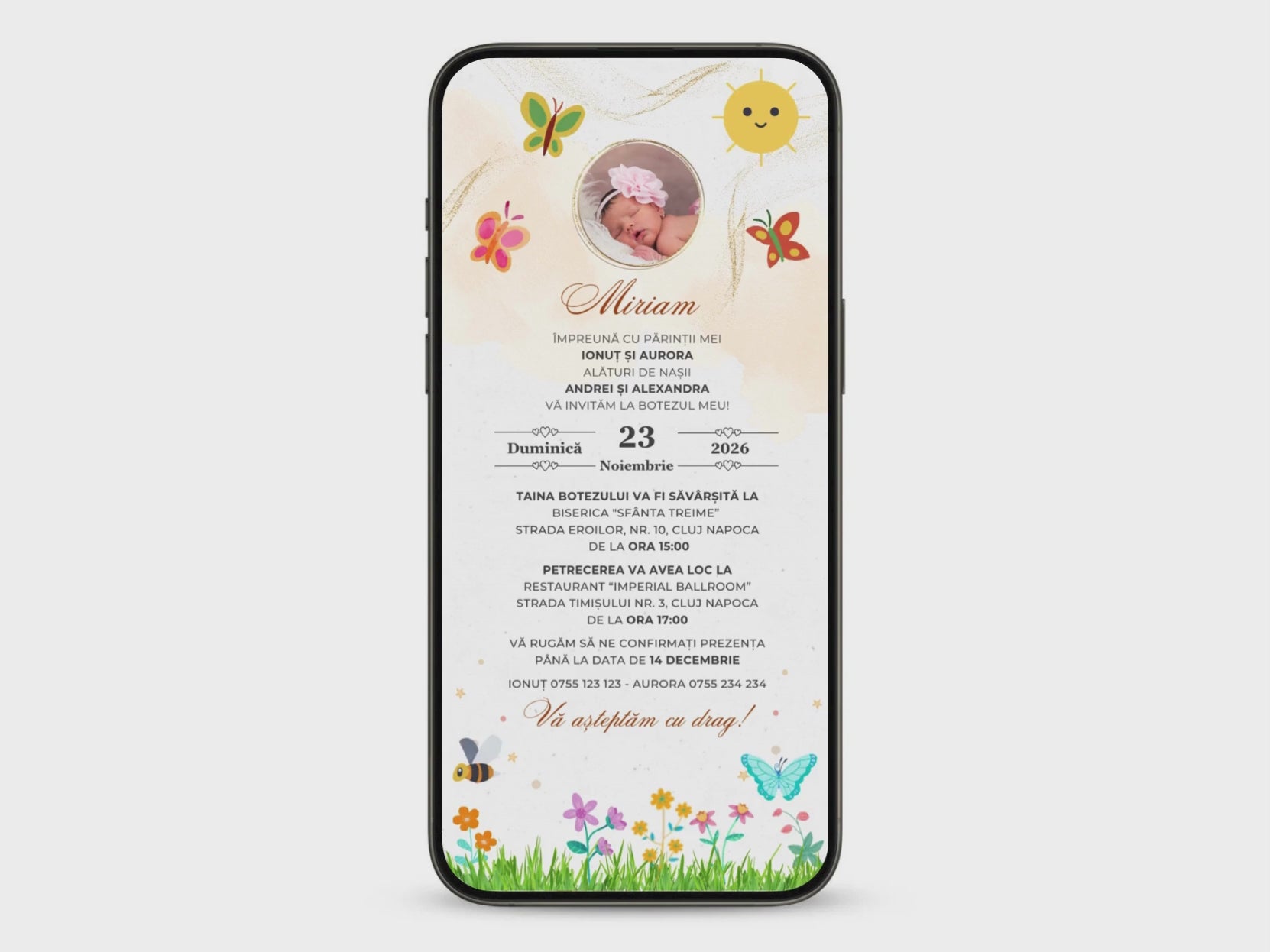 Invitatie Botez Animata GIF, Butterfly Sunshine
