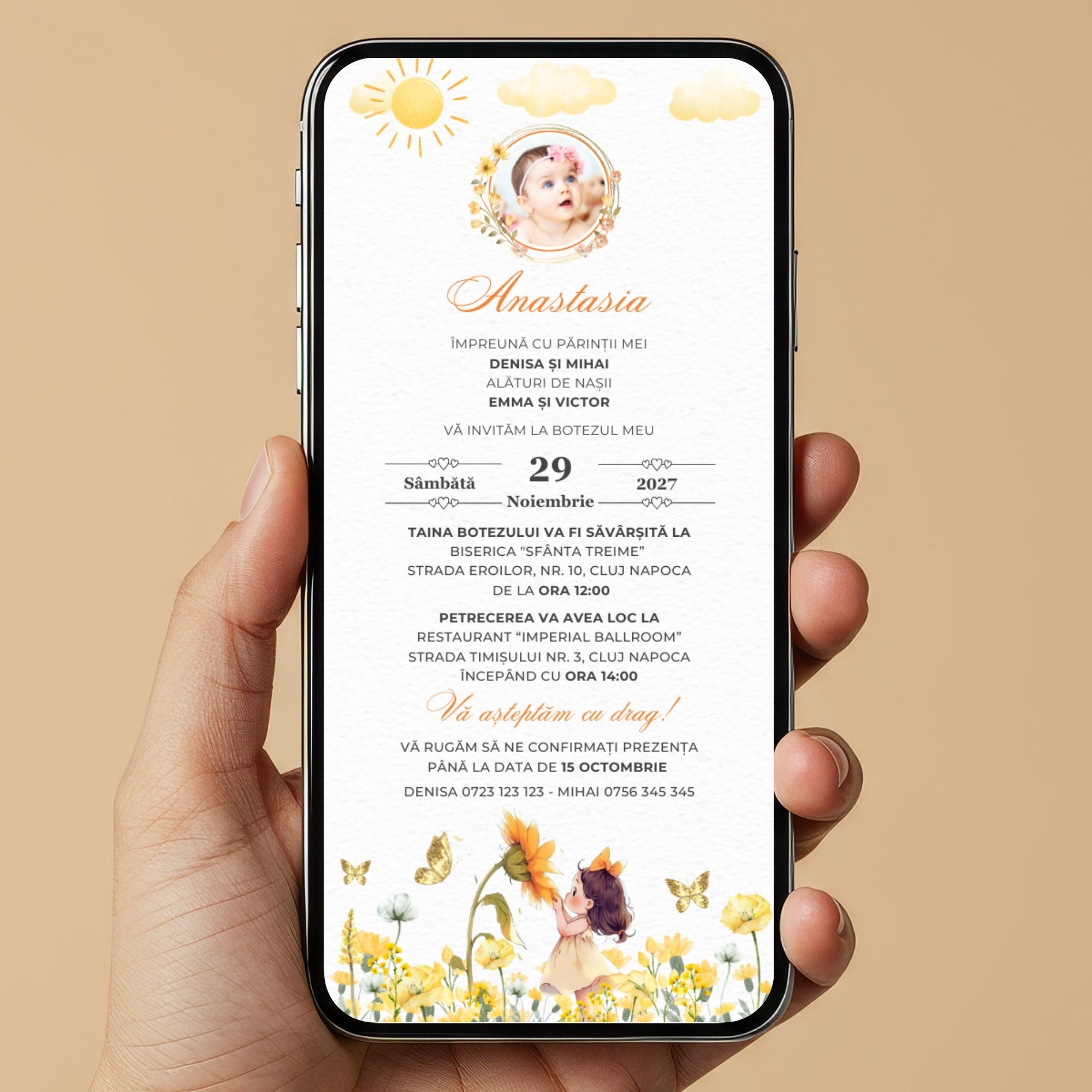 Invitatie Botez Fetita Soarelui, Format Digital