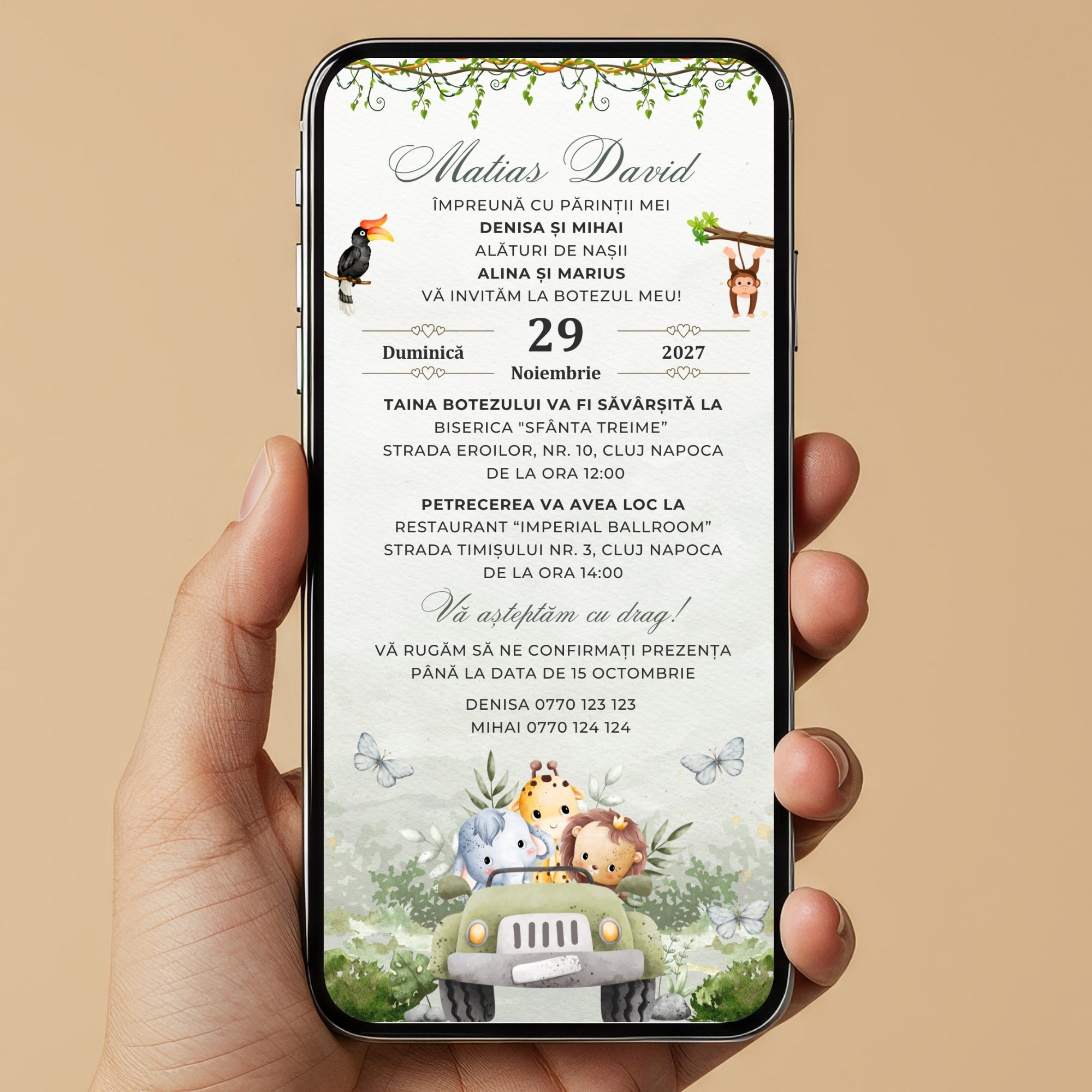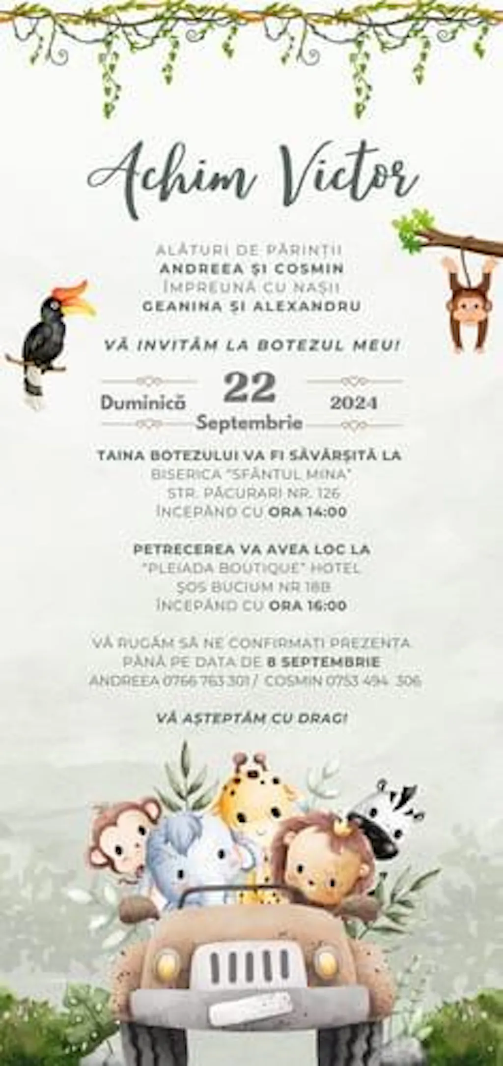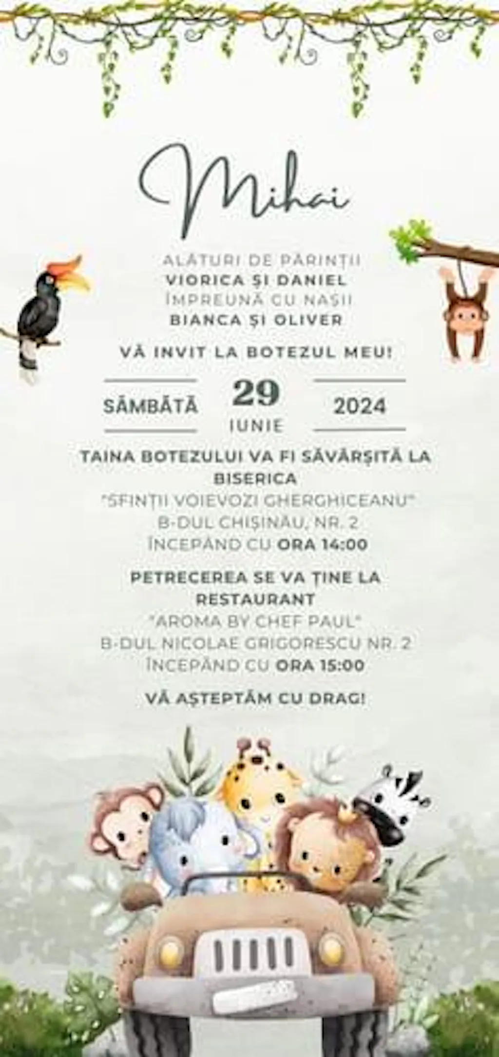 Madalina G. (Romania) Invitatie Botez Safari Green Edition, Format Digital