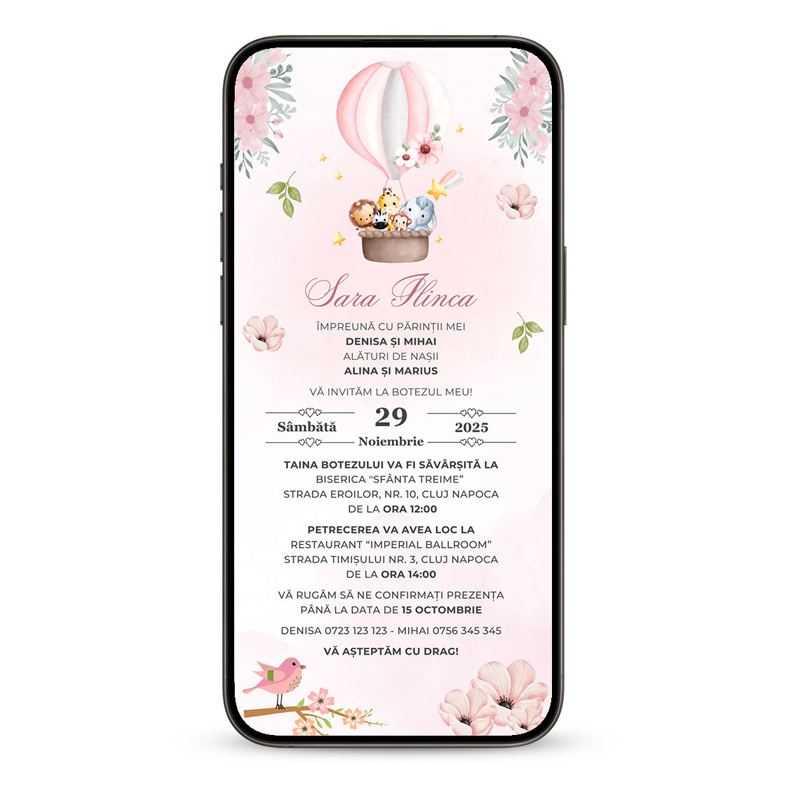 Bercea M.a. Invitatie Botez Hot Air Safari, Format Digital