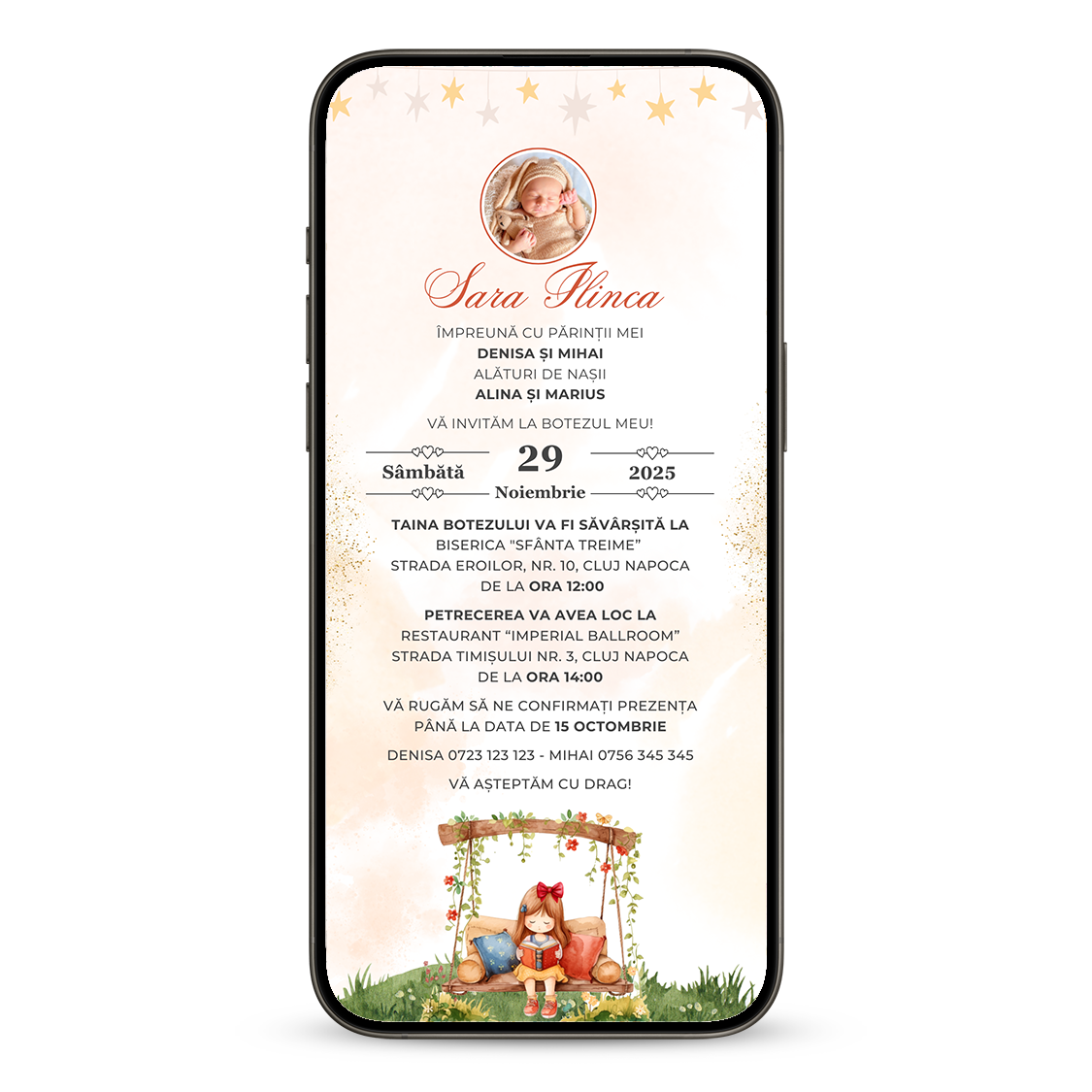 - Invitația poate fi adaptată și pentru alte evenimente
