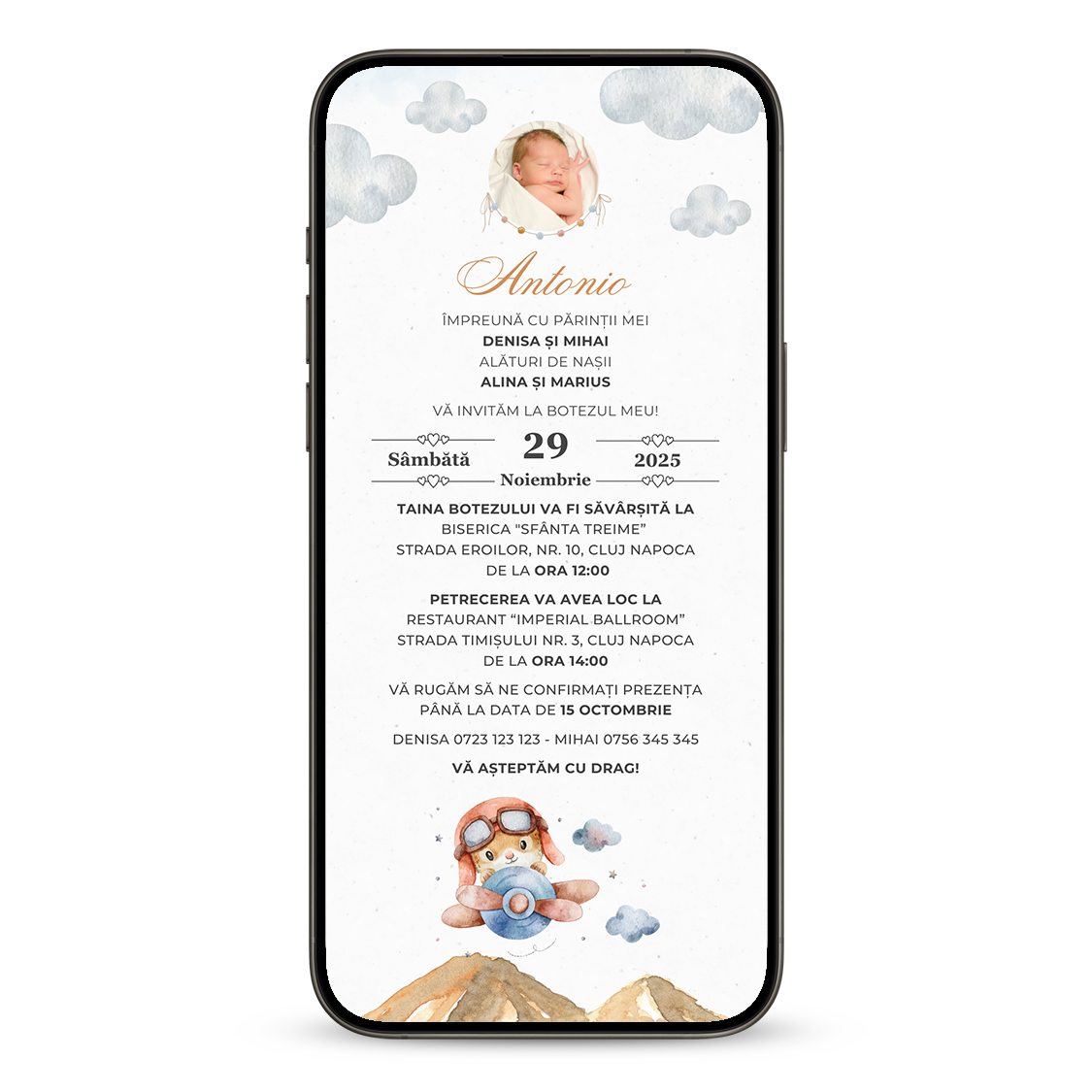 Invitatie Botez Micutul Aviator, Format Digital