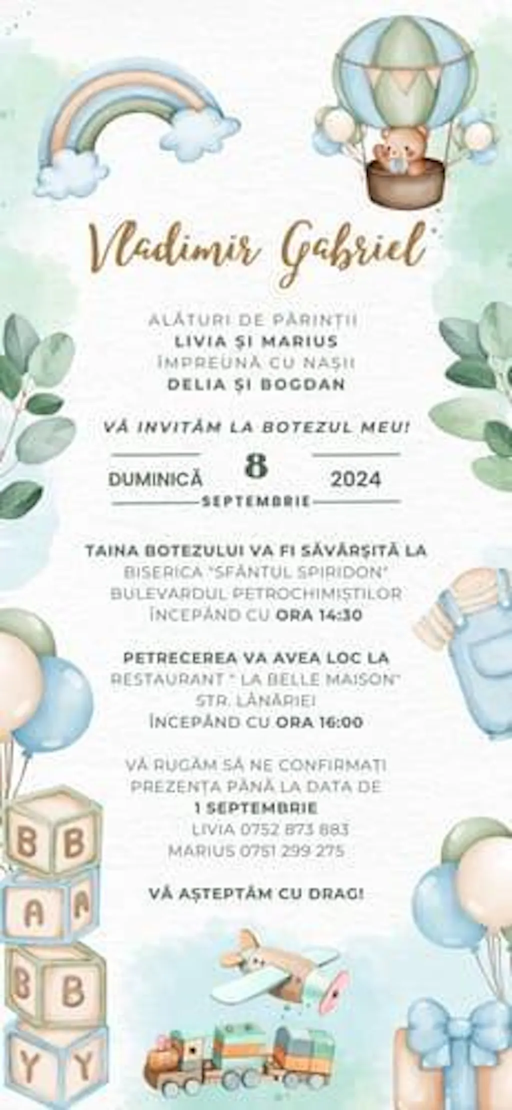 Foarte mulțumită de serviciul oferit! Invitația arata impecabil, colorată și vesela!