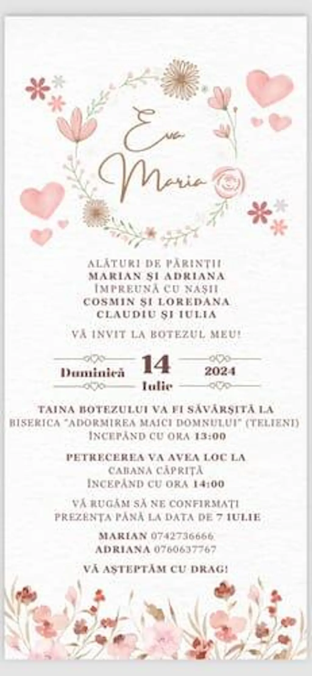 Am primit-o foarte repede și a ieșit foarte frumoasă! Mulțumim și recomandăm