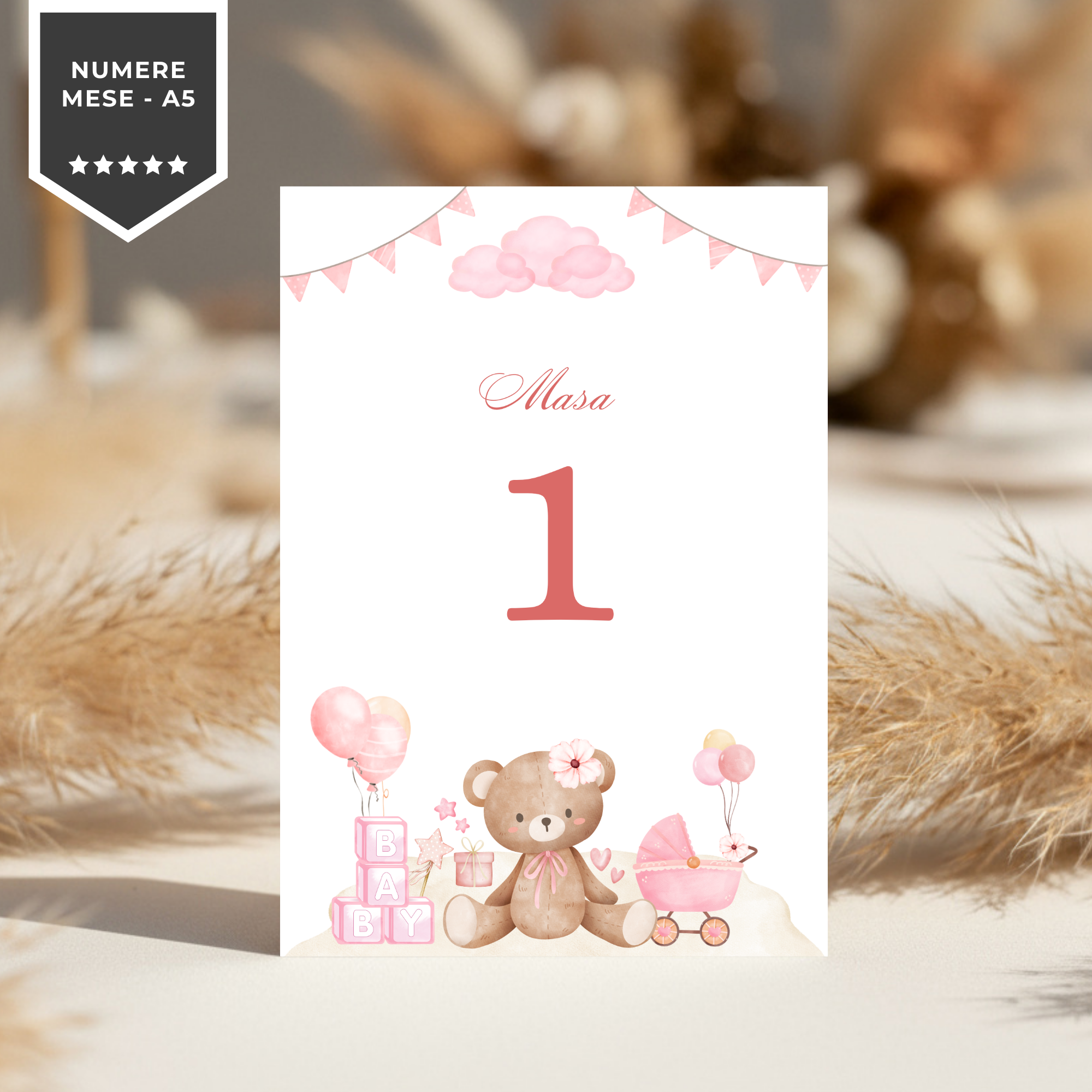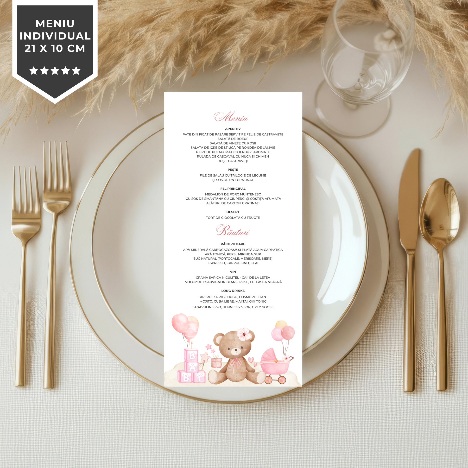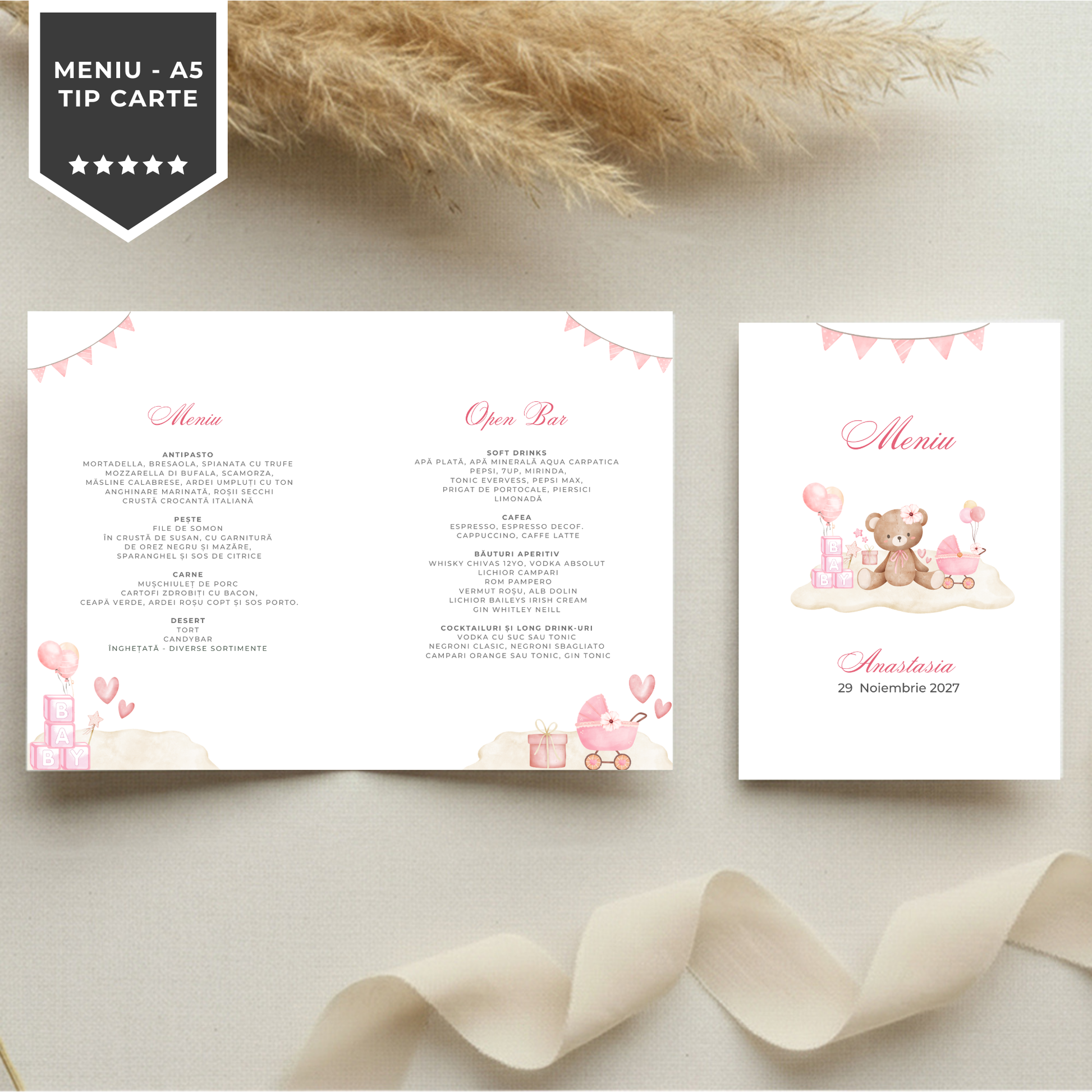 Maria B. Invitatie Botez Ursuletul Jucaus Baby Girl, Format Digital