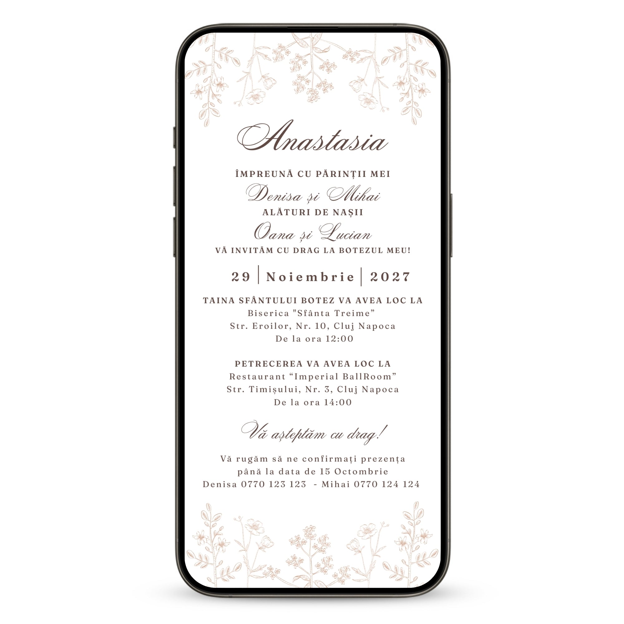 Invitatie Botez Flowers, Format Digital