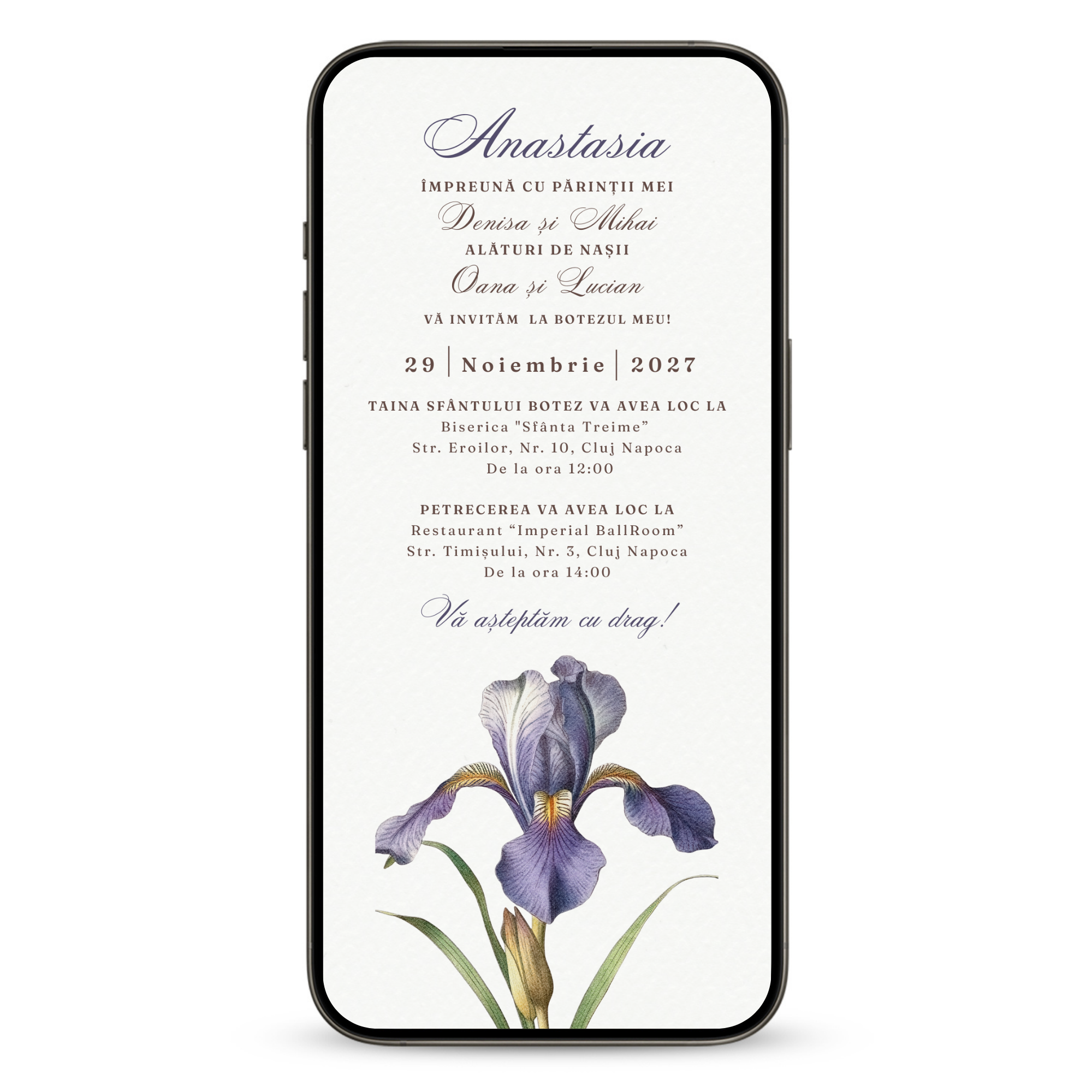 Invitatie Botez Iris, Format Digital