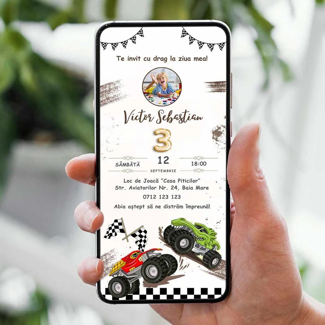Invitatie Zi De Nastere Monster Trucks, Format Digital
