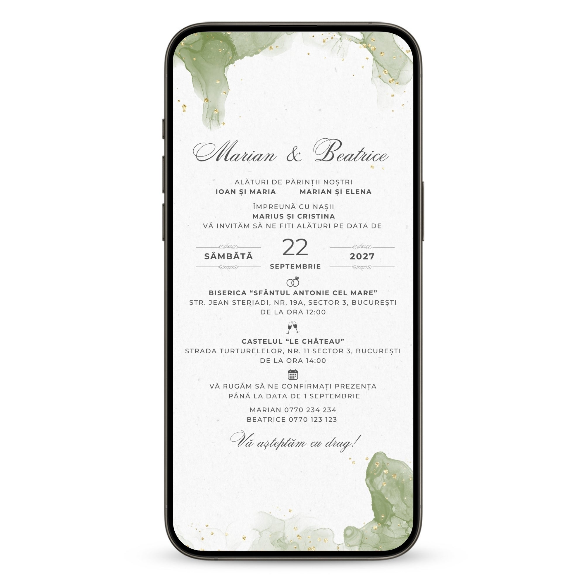 - Îți trimitem invitația pe WhatsApp sau Email