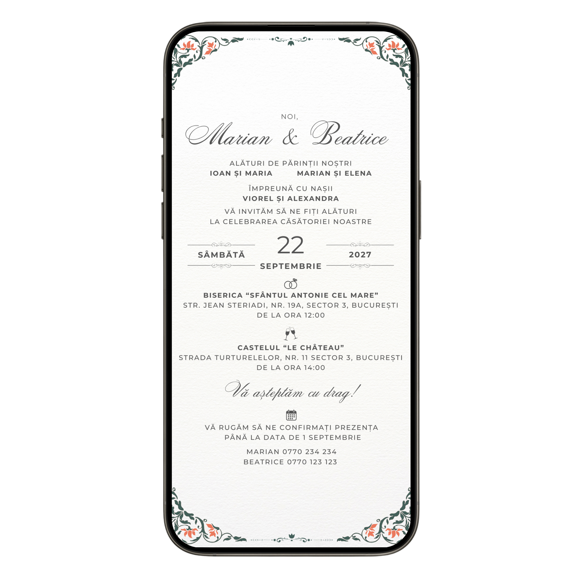 - Îți trimitem invitația pe WhatsApp sau Email