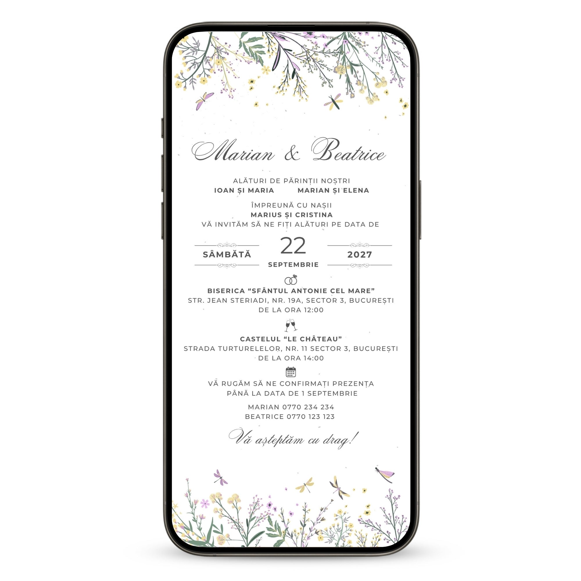 - Îți trimitem invitația pe WhatsApp sau Email