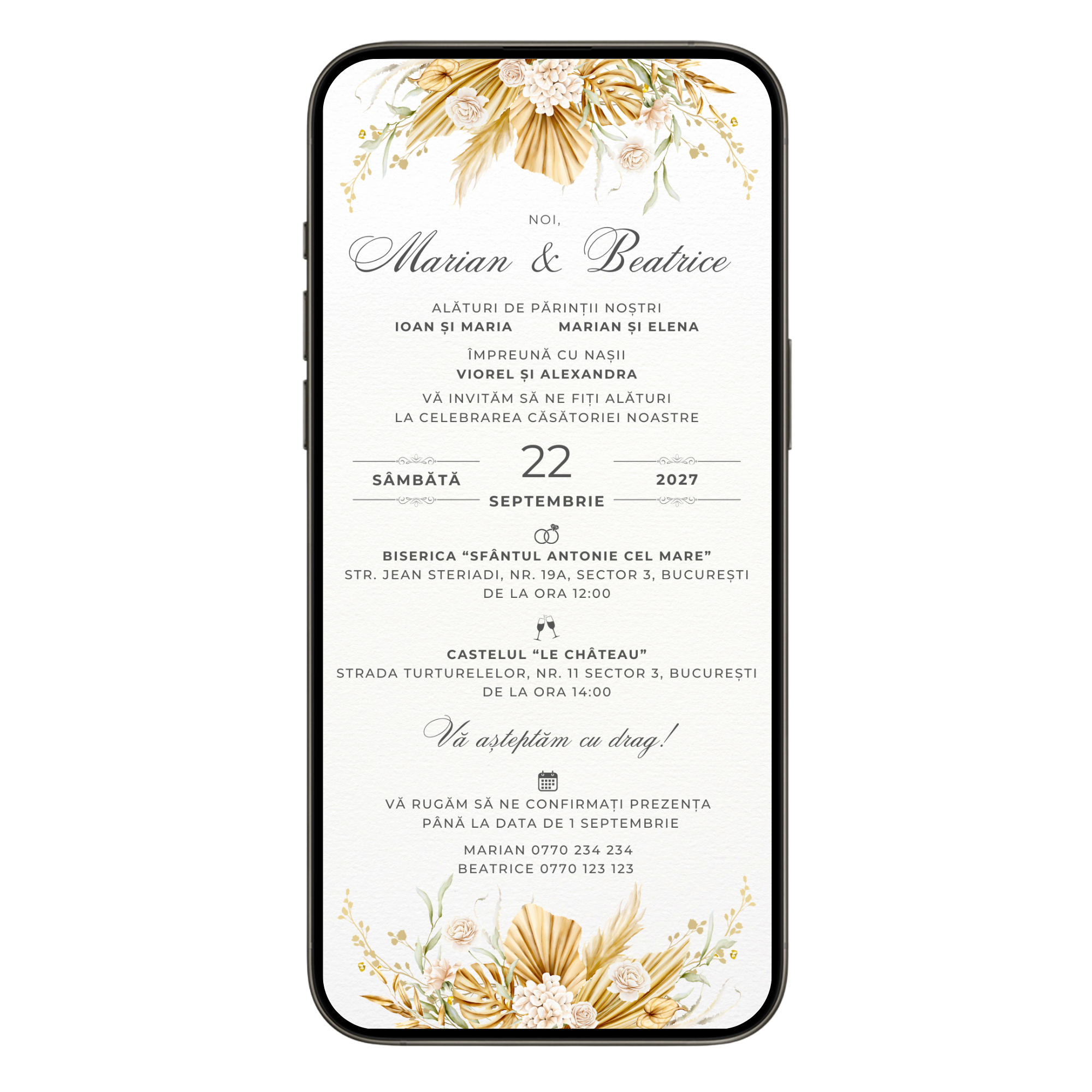 - Îți trimitem invitația pe WhatsApp sau Email