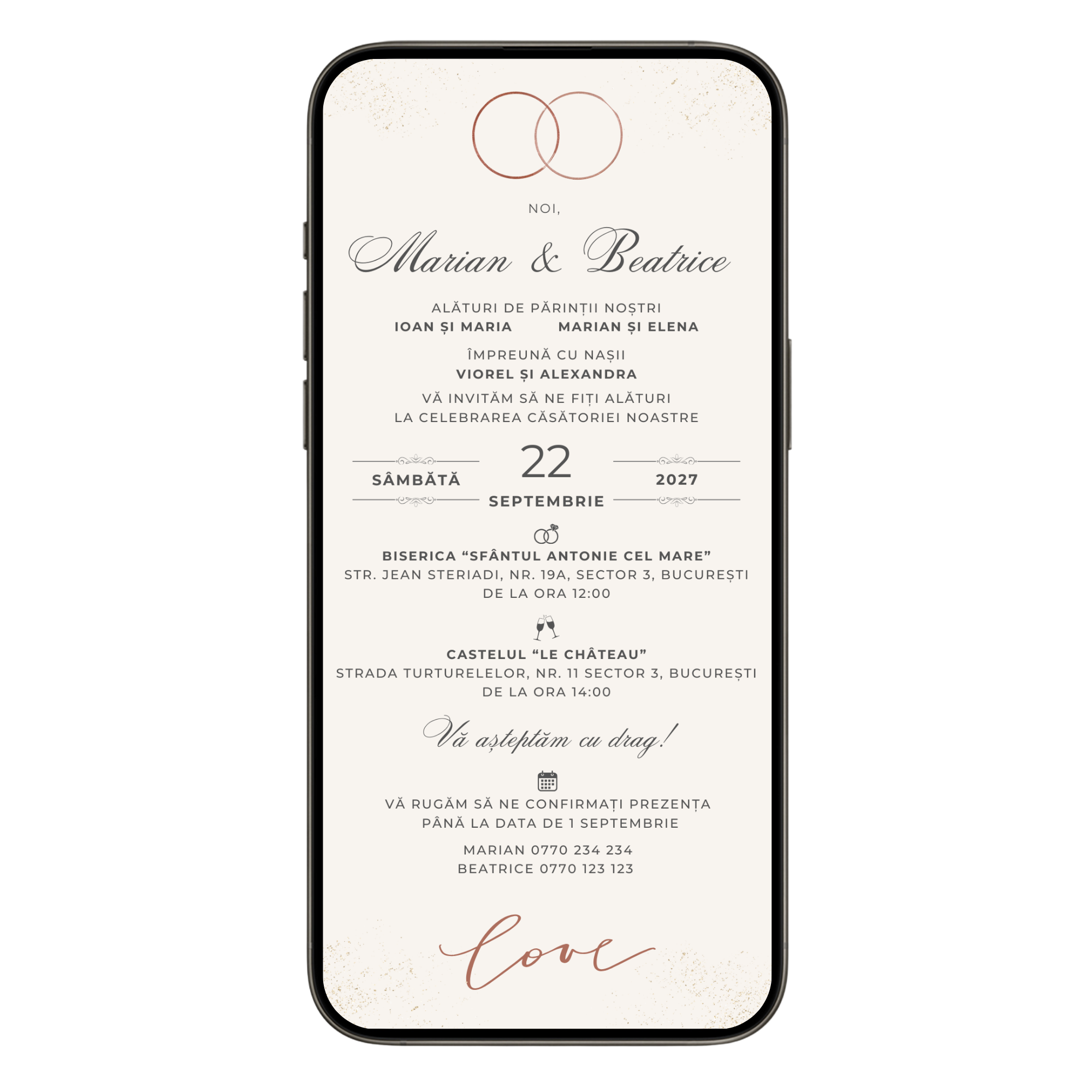 - Îți trimitem invitația pe WhatsApp sau Email