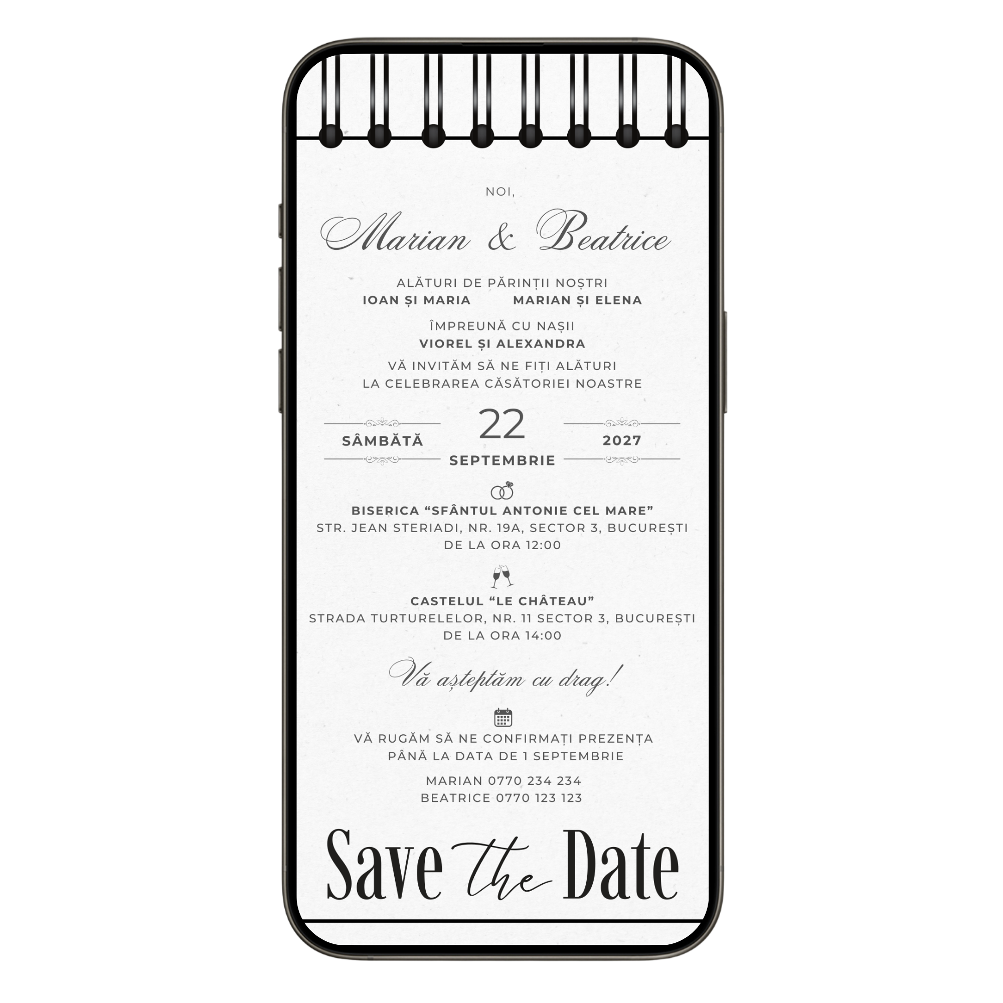 Invitatie Nunta Save the Date Notes, Format Digital