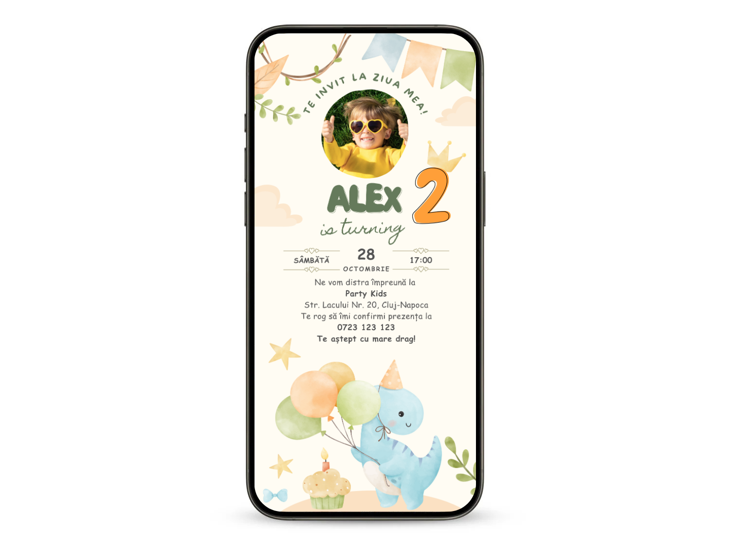 Invitatie Zi De Nastere Animata GIF, Party Dino