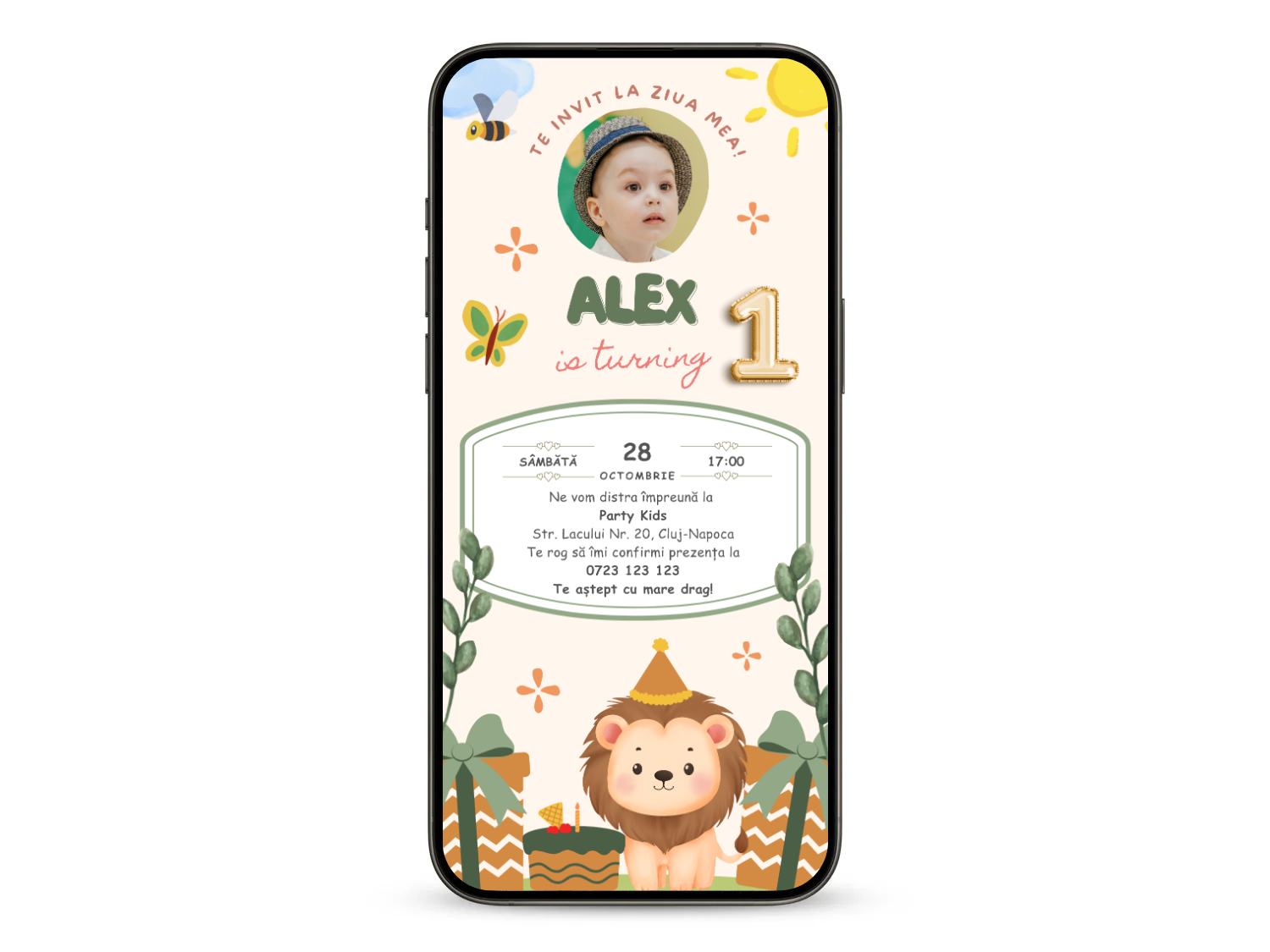 Invitatie Zi De Nastere Animata GIF, Super Safari Lion