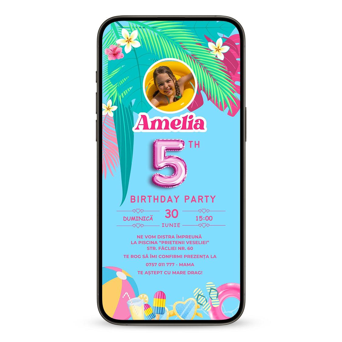 Invitatie Zi De Nastere Tropical Pool Party, Format Digital